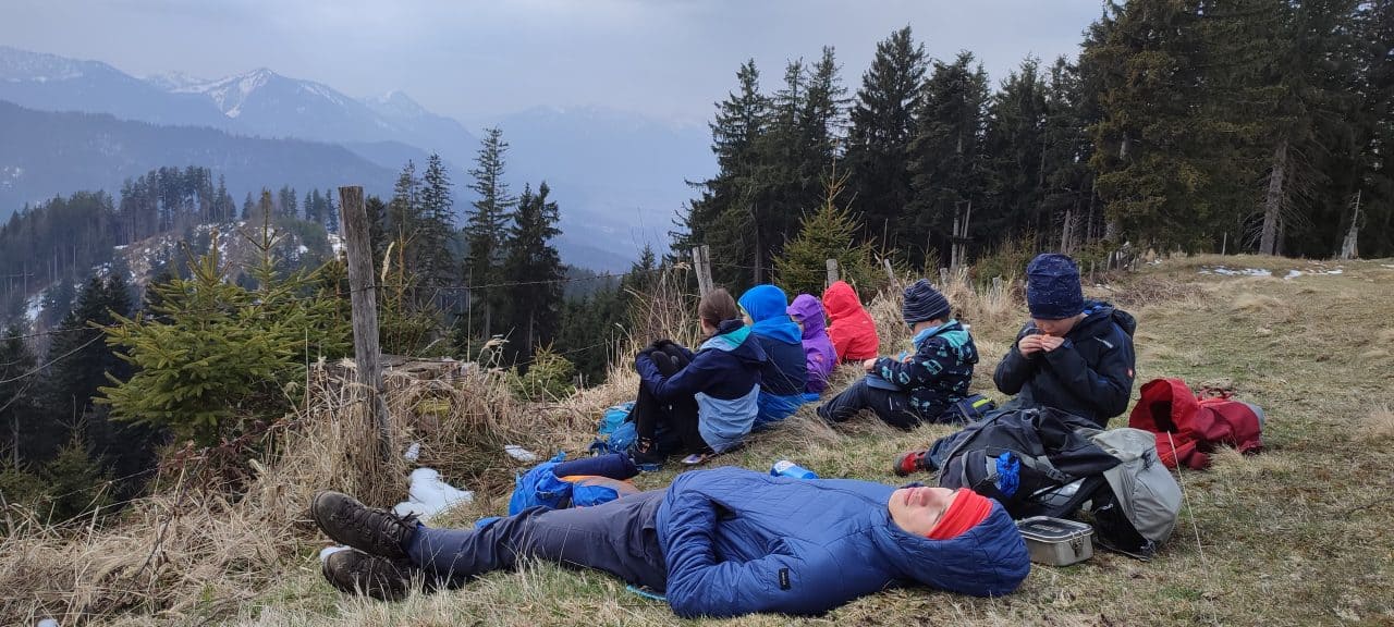 Am 21.03.2026 trafen sich vier Schneewölfe bei eiskalten -3°C am Penzberger Bahnhof, um am Angerlkopf den Osterhasen zu suchen. Die Bahn war pünktlich und so konnten wir in Bichl mit ein paar ersten Sonnenstrahlen starten. Am Fuße des Berges angekommen, war noch so mancher Finger kalt, doch dann ging es steil bergauf und so wich auch die letzte Kälte aus den Gliedern. Nach ein paar Pausen, vielen flachen und steilen Stücken, erreichten wir den windigen Gipfelhang, bei dem die Wurzeltreppen