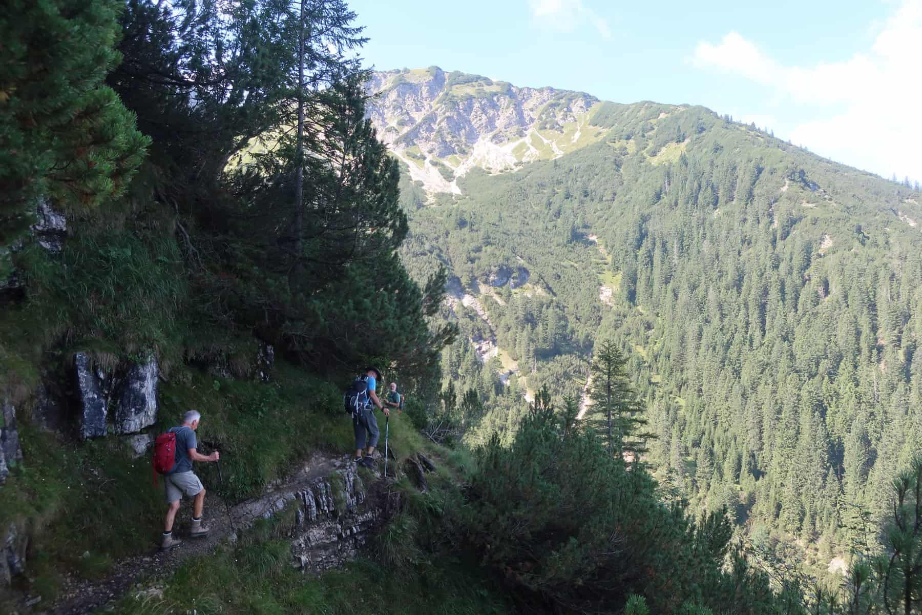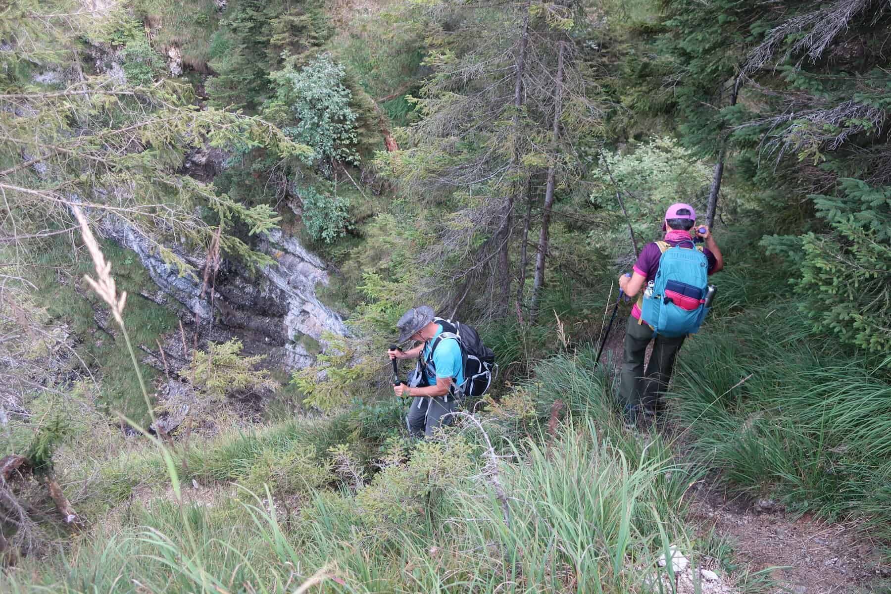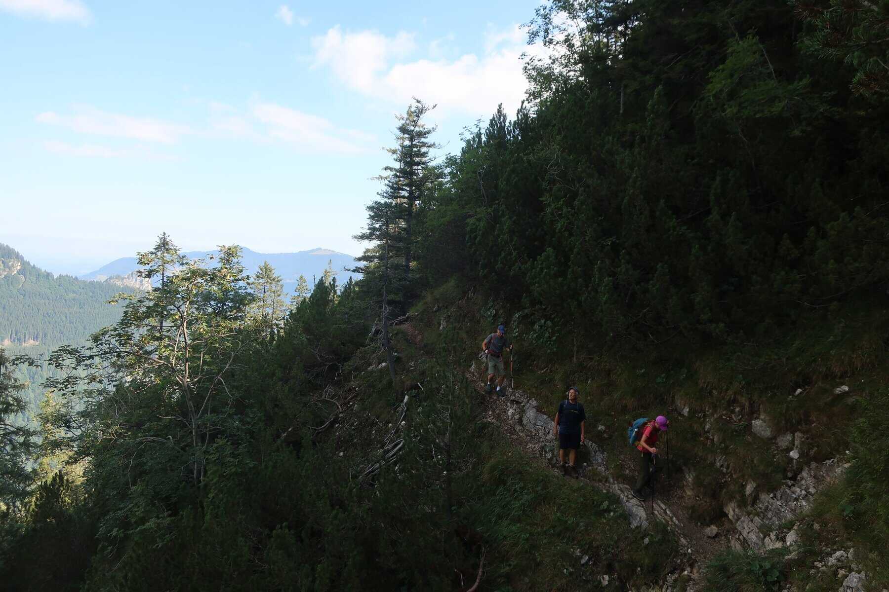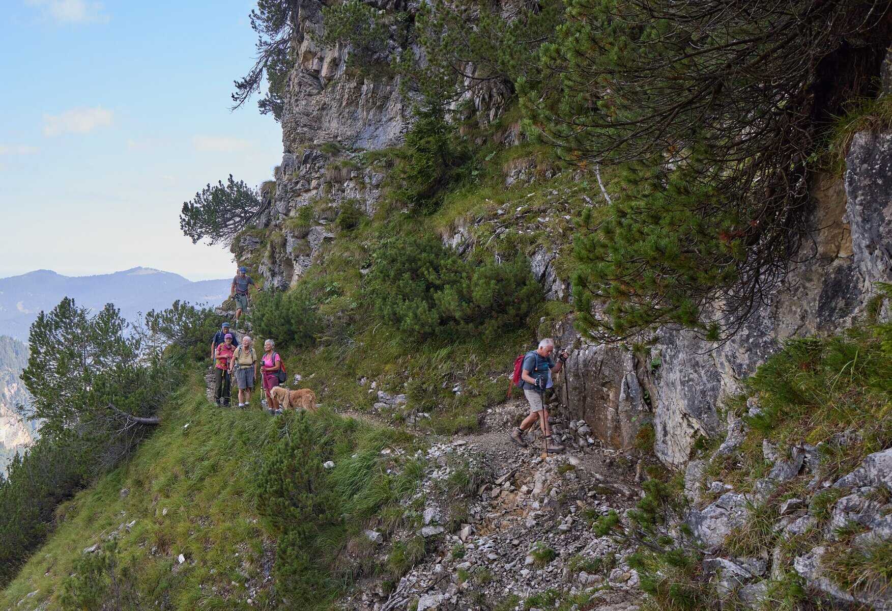 Wir fragten uns schon wie hier Almwirtschaft überhaupt möglich war. Die engen, steilen Steige die wir Wanderer nutzten, waren ungeeignet das Vieh heraufzubringen. Man musste die Tiere deshalb vom Ettaler Sattel über OCHSENSITZ zu den Almen treiben. Alles ziemlich mühsam für ein wenig Gras im gefährlichen Gelände. So wurden hier alle Almen Anfang des 20. Jh. aufgelassen.
