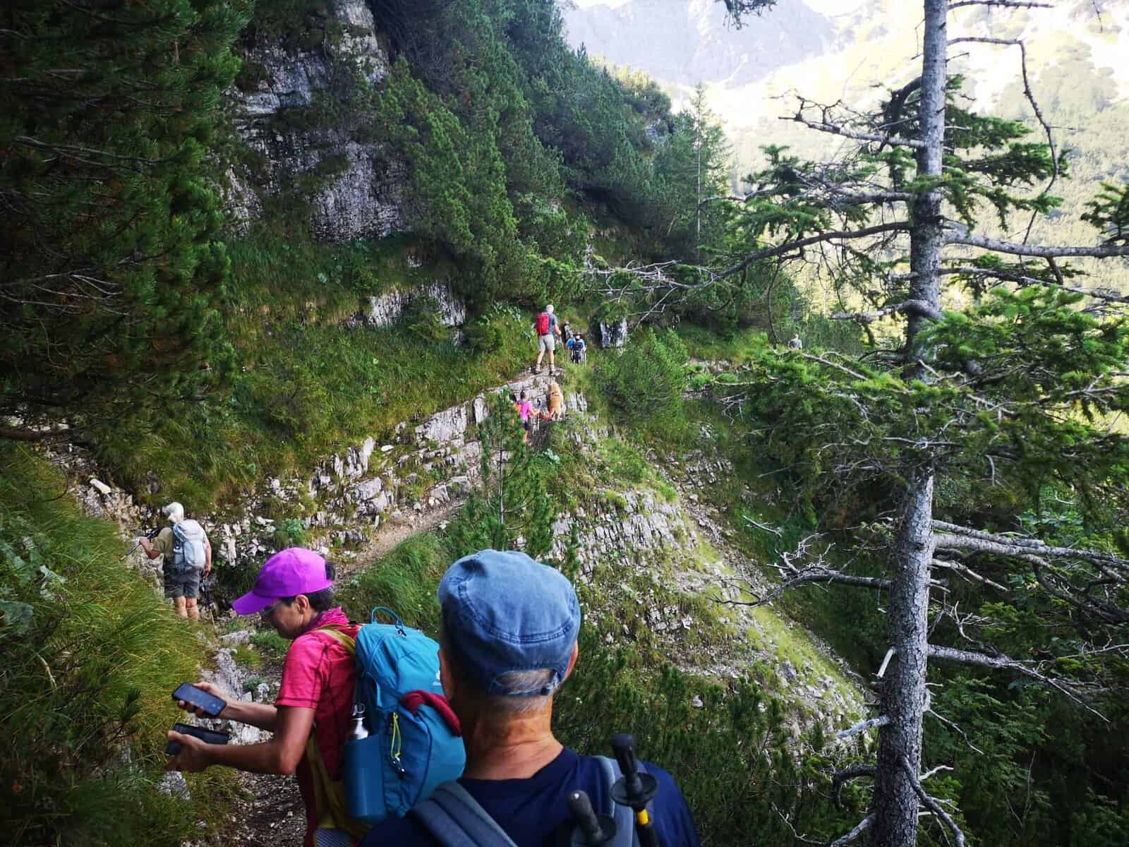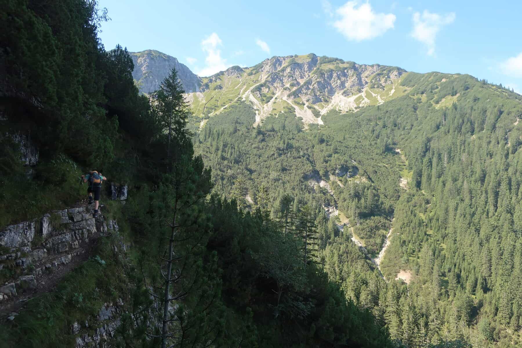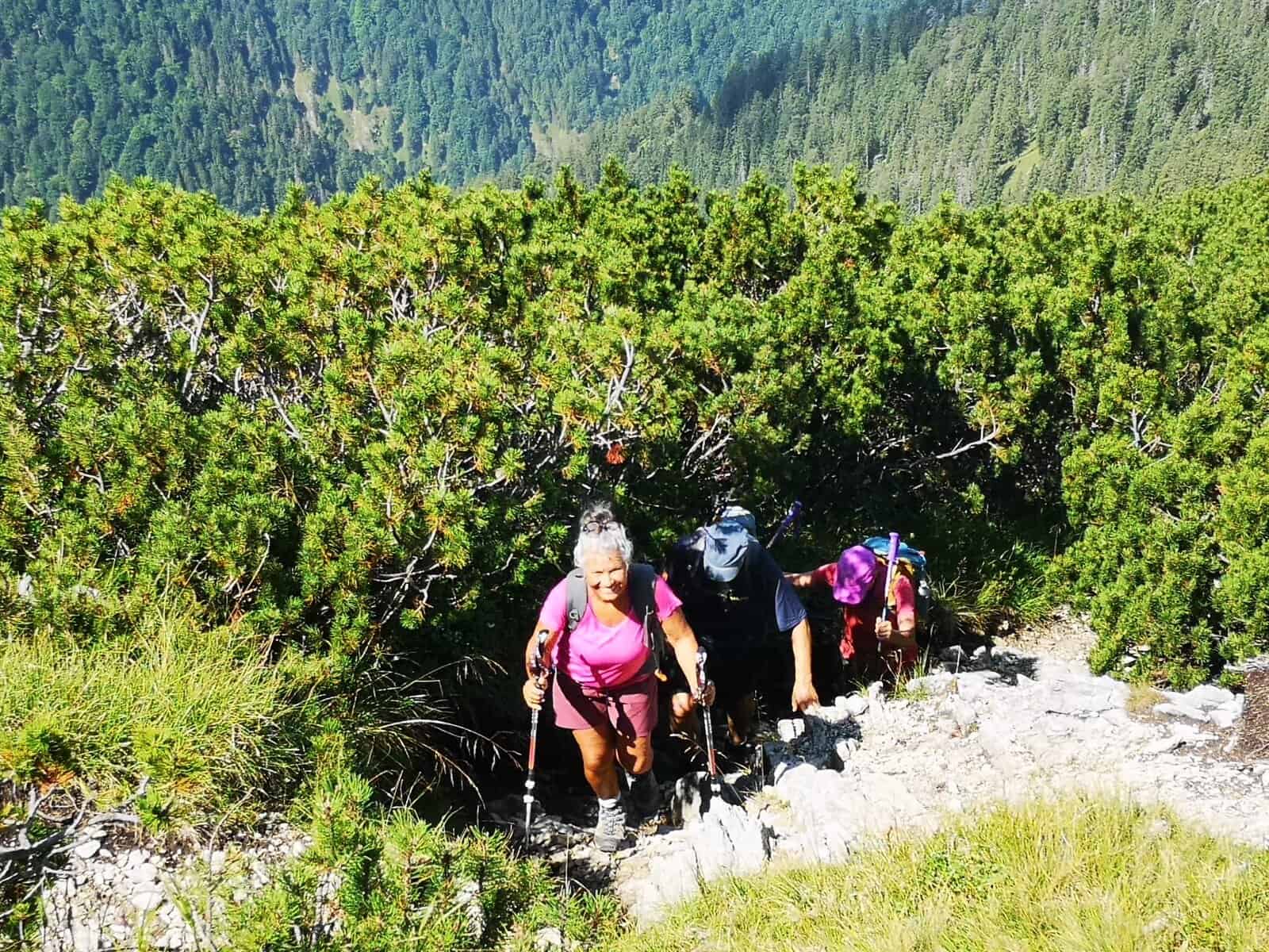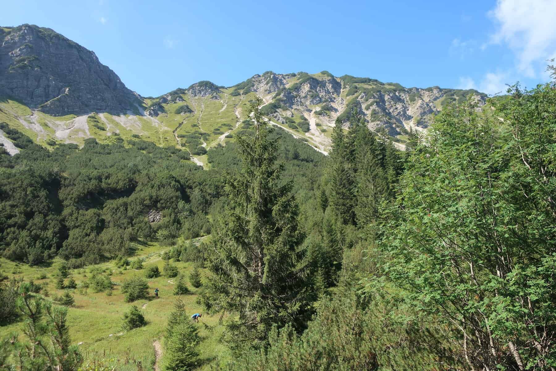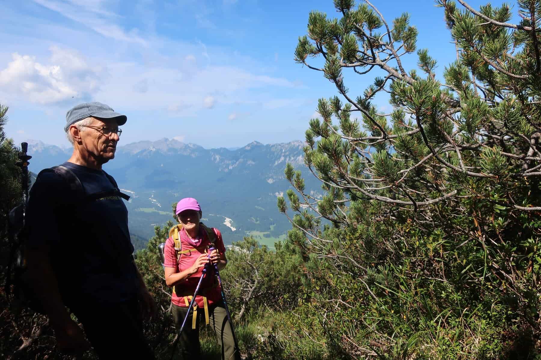 Wir fragten uns schon wie hier Almwirtschaft überhaupt möglich war. Die engen, steilen Steige die wir Wanderer nutzten, waren ungeeignet das Vieh heraufzubringen. Man musste die Tiere deshalb vom Ettaler Sattel über OCHSENSITZ zu den Almen treiben. Alles ziemlich mühsam für ein wenig Gras im gefährlichen Gelände. So wurden hier alle Almen Anfang des 20. Jh. aufgelassen.