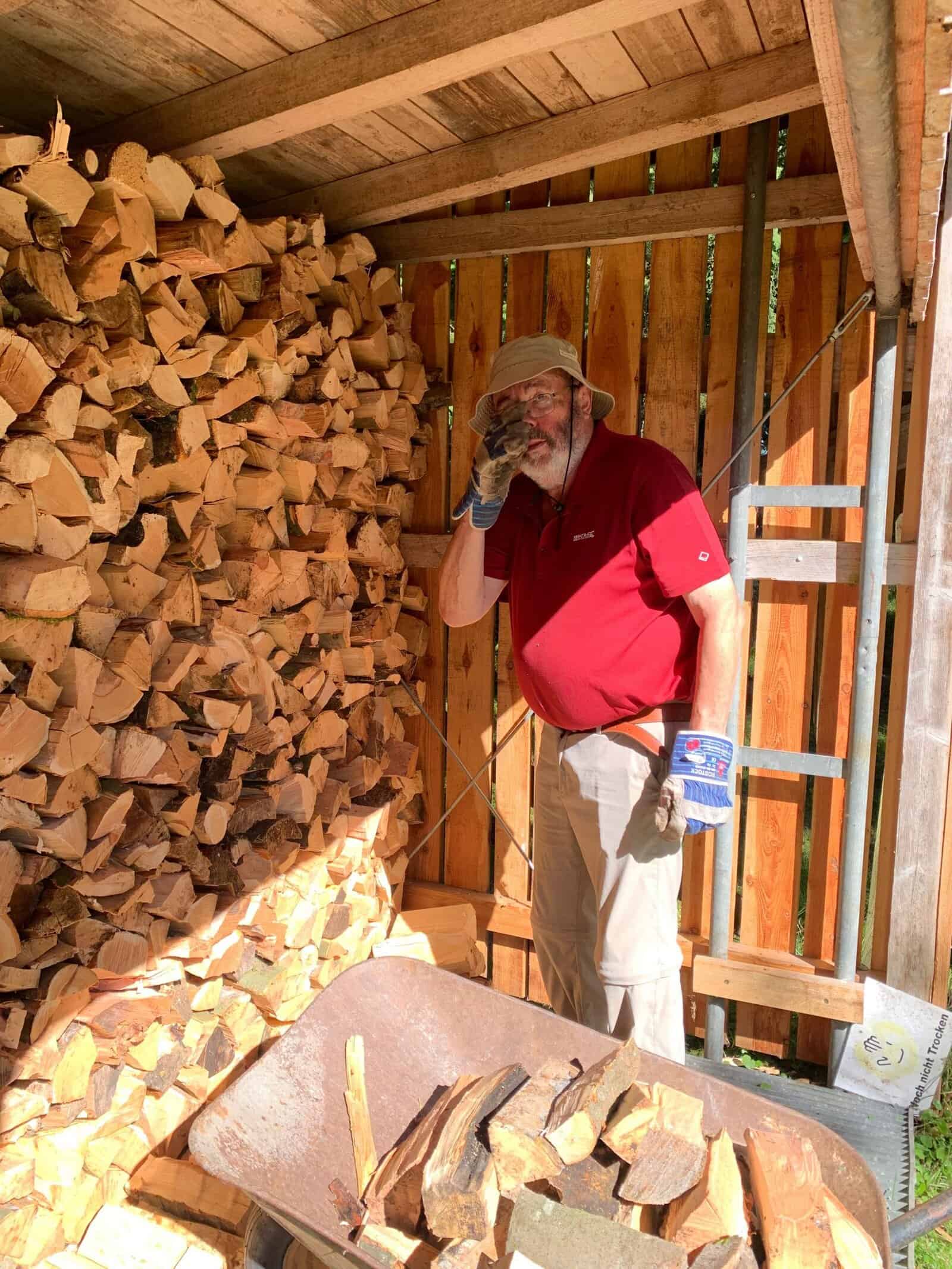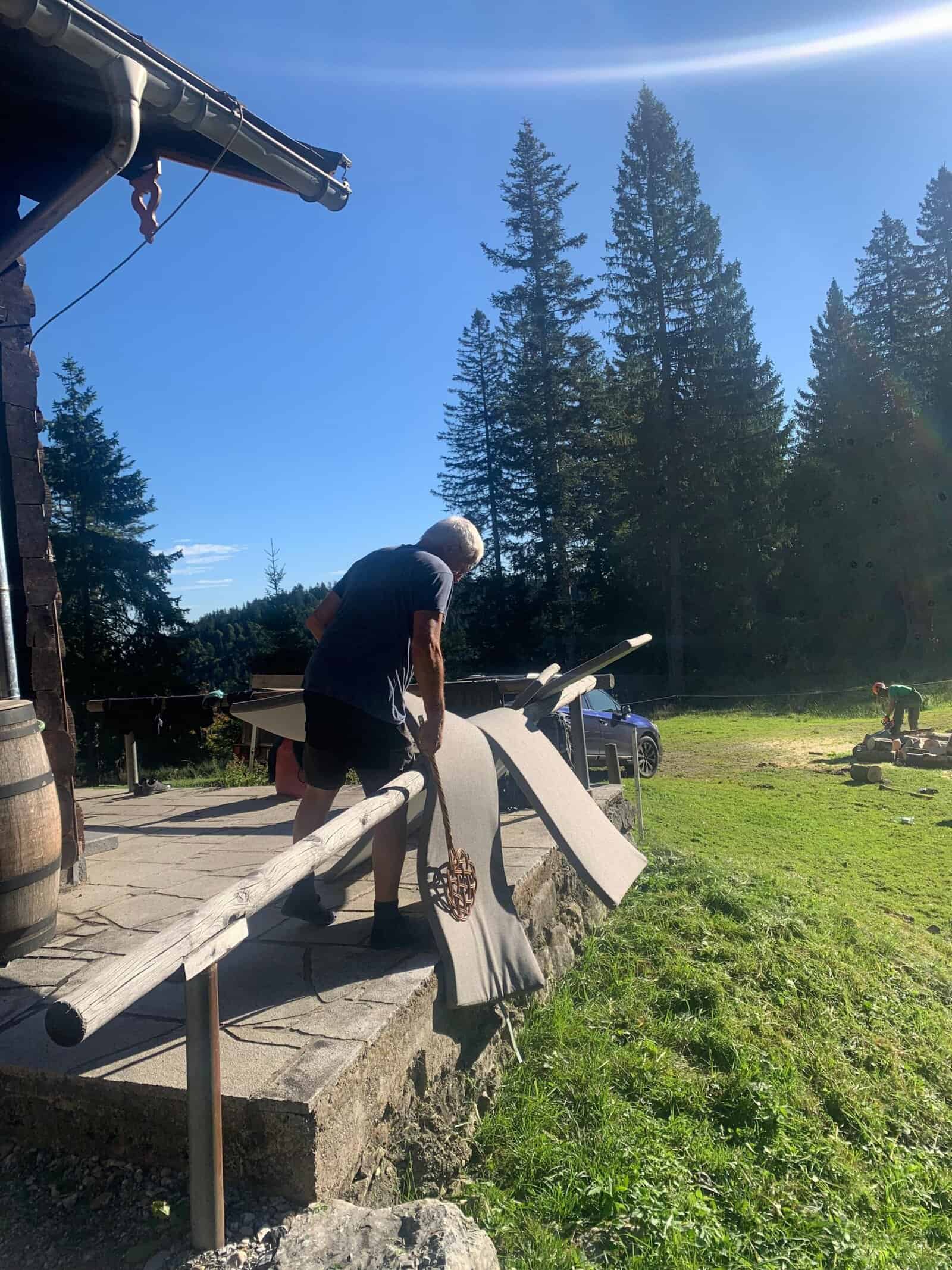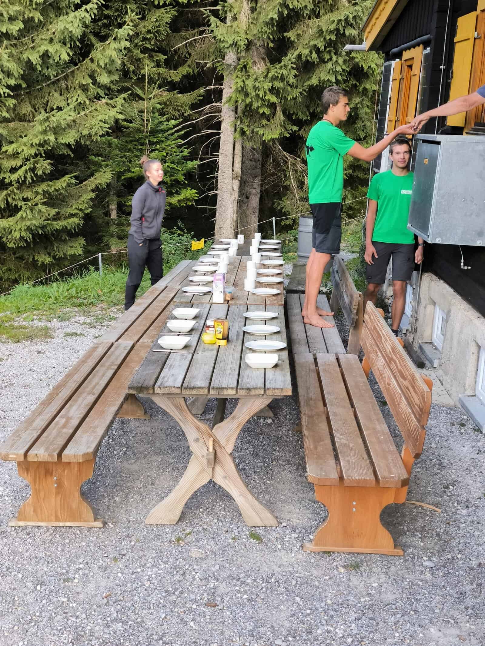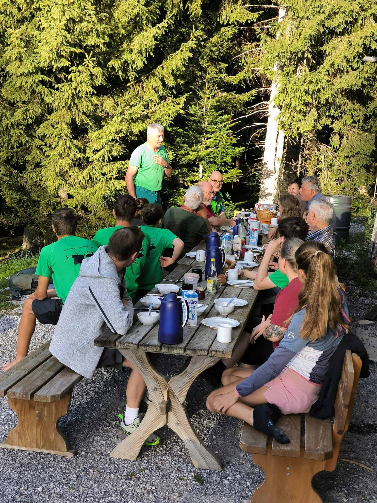 Nach einer warmen Nacht wurde am Samstag mit 27 Helfern (14 bis über 70 Jahre alt) emsig die Hütte gereinigt, die Wasserversorgung gewartet, der Garten gemäht, die Getränkelieferung verräumt, … und das Feuerholz gesägt, gespalten, gehackt und gestapelt. Nicht zu vergessen zu erwähnen hierbei ist das gemeinsame Mittagessen, in diesem Jahr gabs Chili con Carne mit Salat und anschließend ein abwechslungsreiches Kuchenbuffet.
