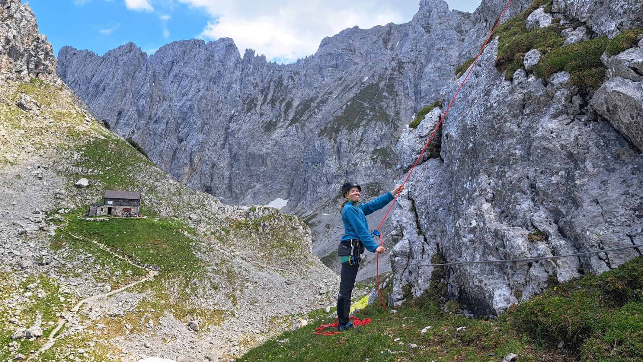 Am letzten Tag sehr früh am morgen machten sich Saskia, Micha und Isi auf den Weg zur Ackerlspitze, und schon beim Zustieg war klar – das wird keine Kaffeefahrt. Über Geröll und leichte Kletterstellen ging es höher und höher, und am Ende stand das Trio, etwas zeitversetzt, stolz auf einem der höchsten Gipfel des Wilden Kaisers.