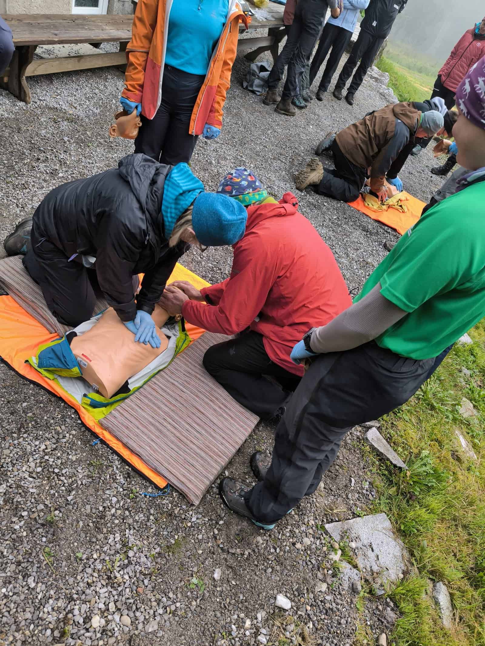 Am letzten Septemberwochenende 2025 hatten 19 Mitglieder unserer Sektion (im Alter zwischen 14 und 68 Jahren) die tolle Gelegenheit, an einer Ausbildung in Alpiner Erster Hilfe auf der Neulandhütte teilzunehmen. 13 von uns trafen schon im Lauf des Freitagabends ein und wurden mit einem köstlichen Abendessen vom Grill begrüßt.