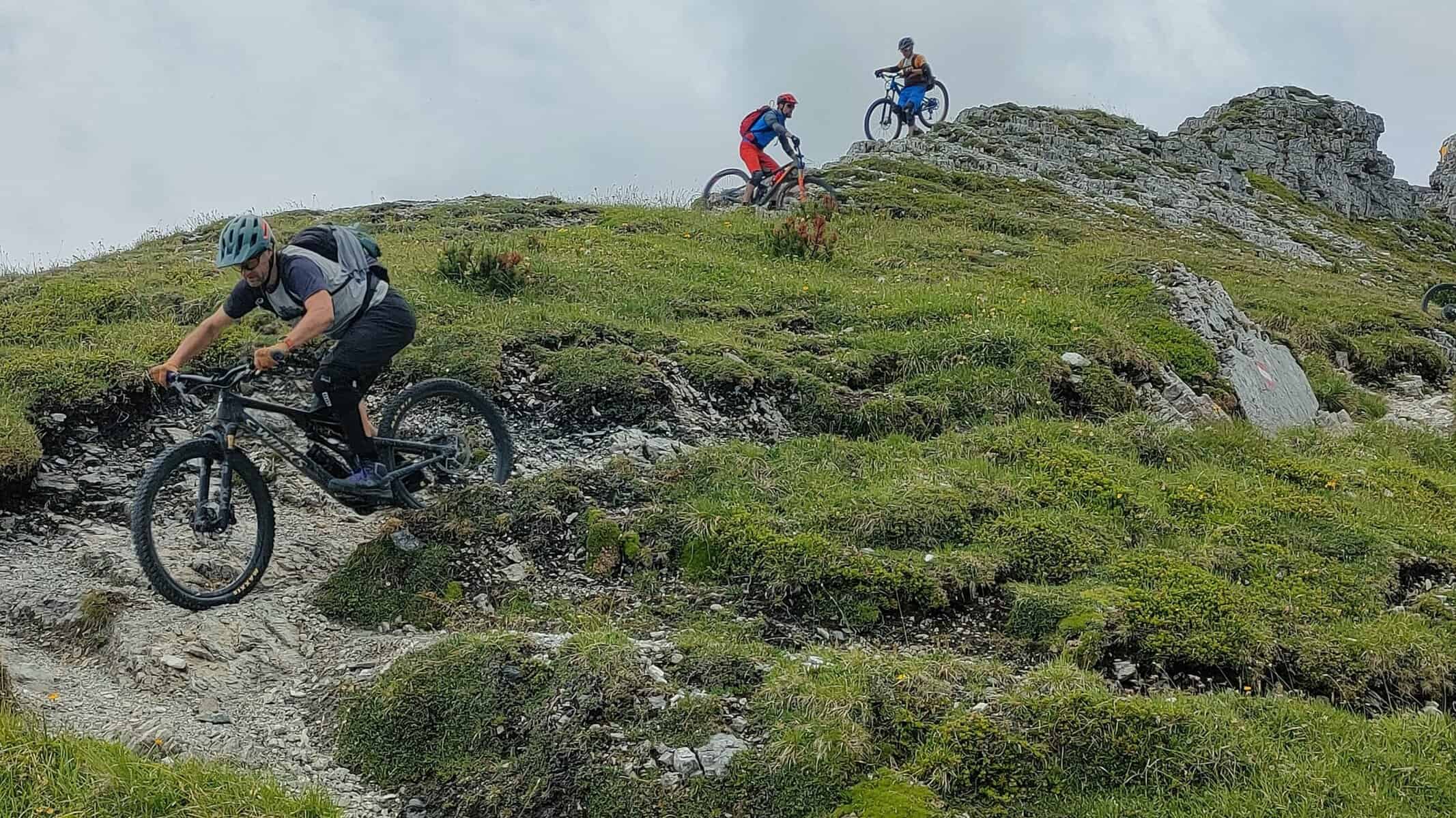 Die Pläne der Gruppe Zwei ist mit Bike&Hike ganz was anders. Die drei radeln zur Elferhütte und steigen zu Fuß auf den alpinen Elferkopf Gipfel – Respekt vor dieser Leistung!