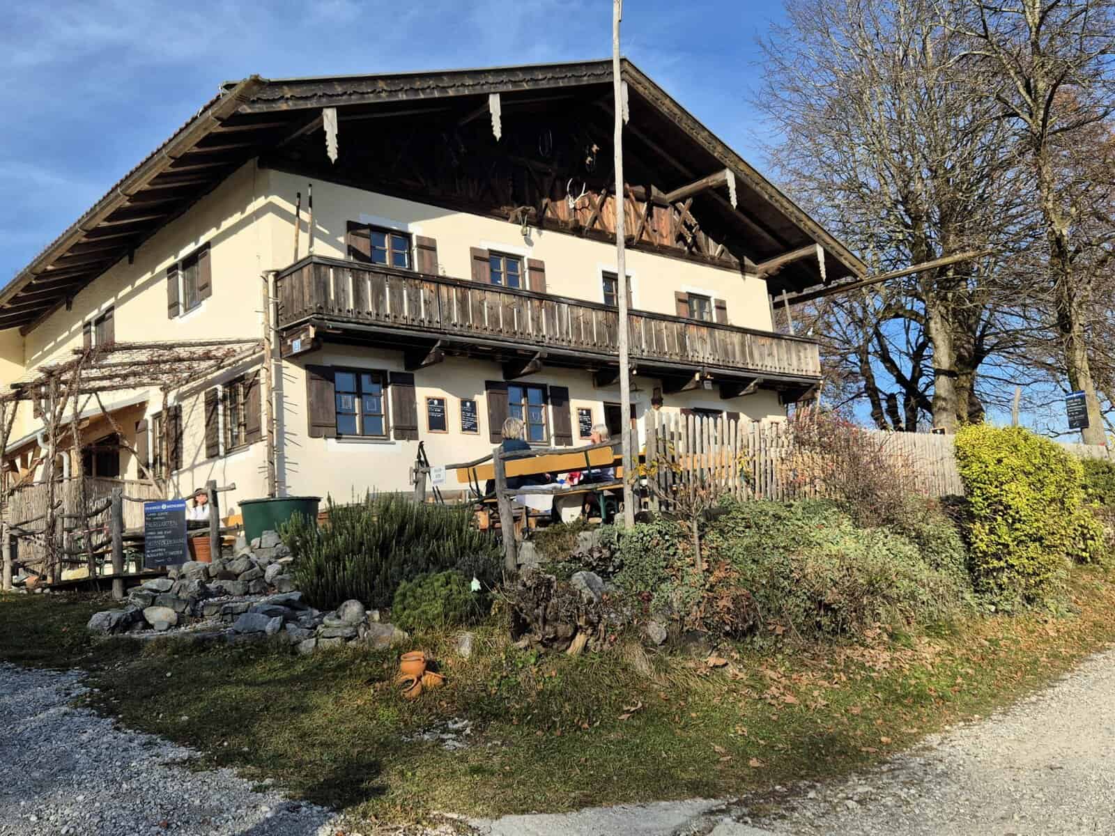 Nach einer kurzen Autofahrt erreichten wir das Traditionsgasthaus Guglhöhr. Hier konnten wir auf der Terrasse noch einmal die warmen Sonnenstrahlen und die herrliche Aussicht auf Herzogstand und Heimgarten genießen – ein wunderbarer Abschluss dieser schönen Wanderung!