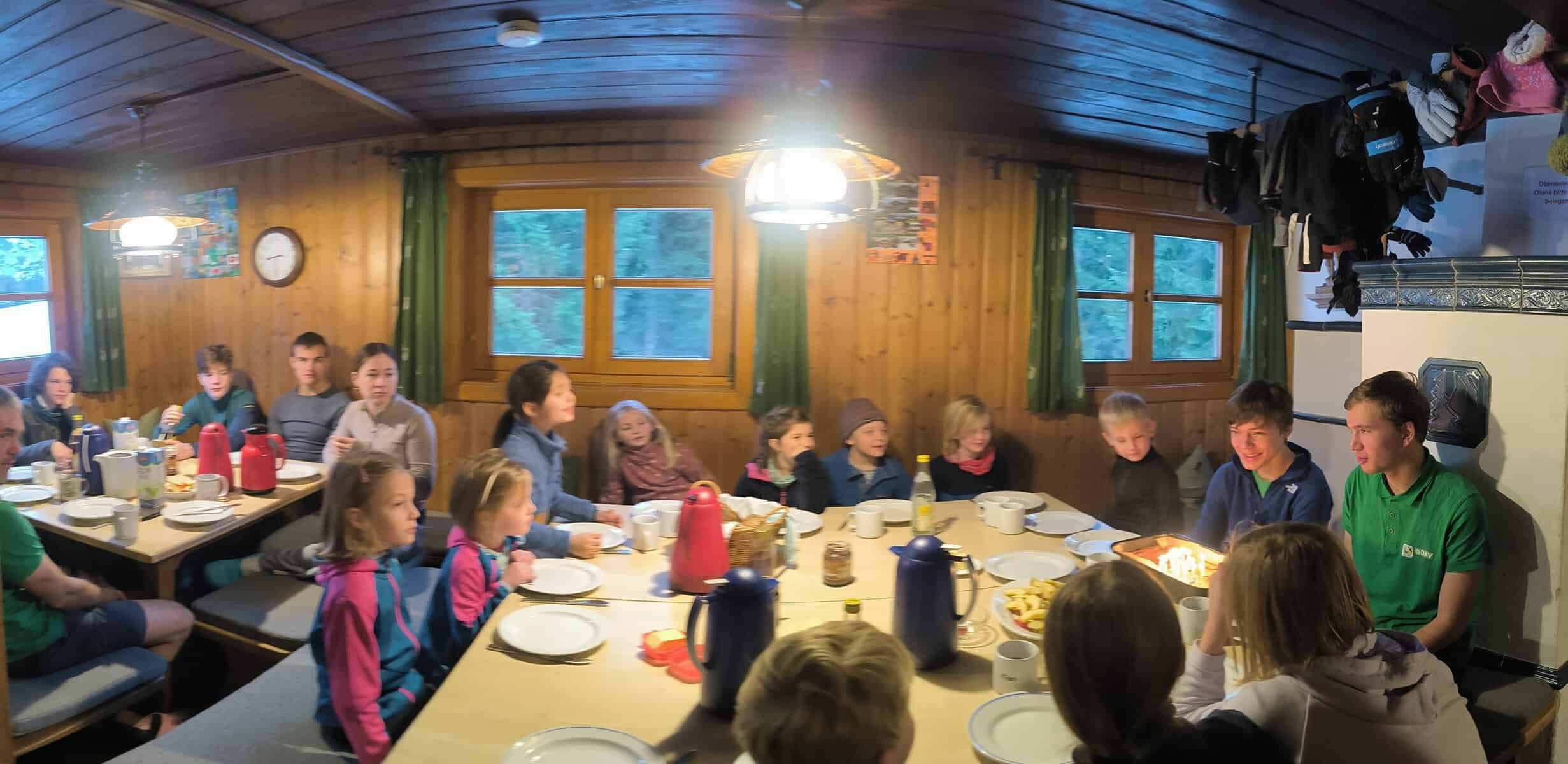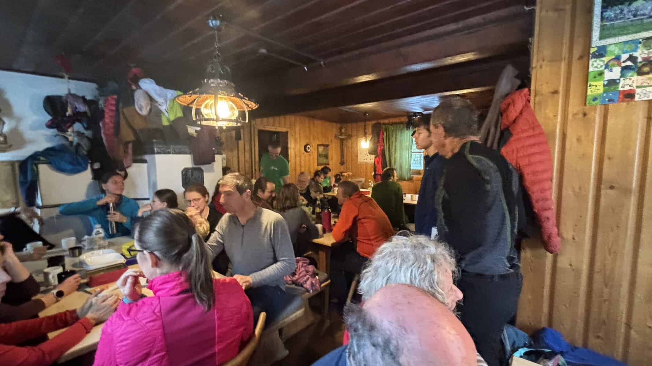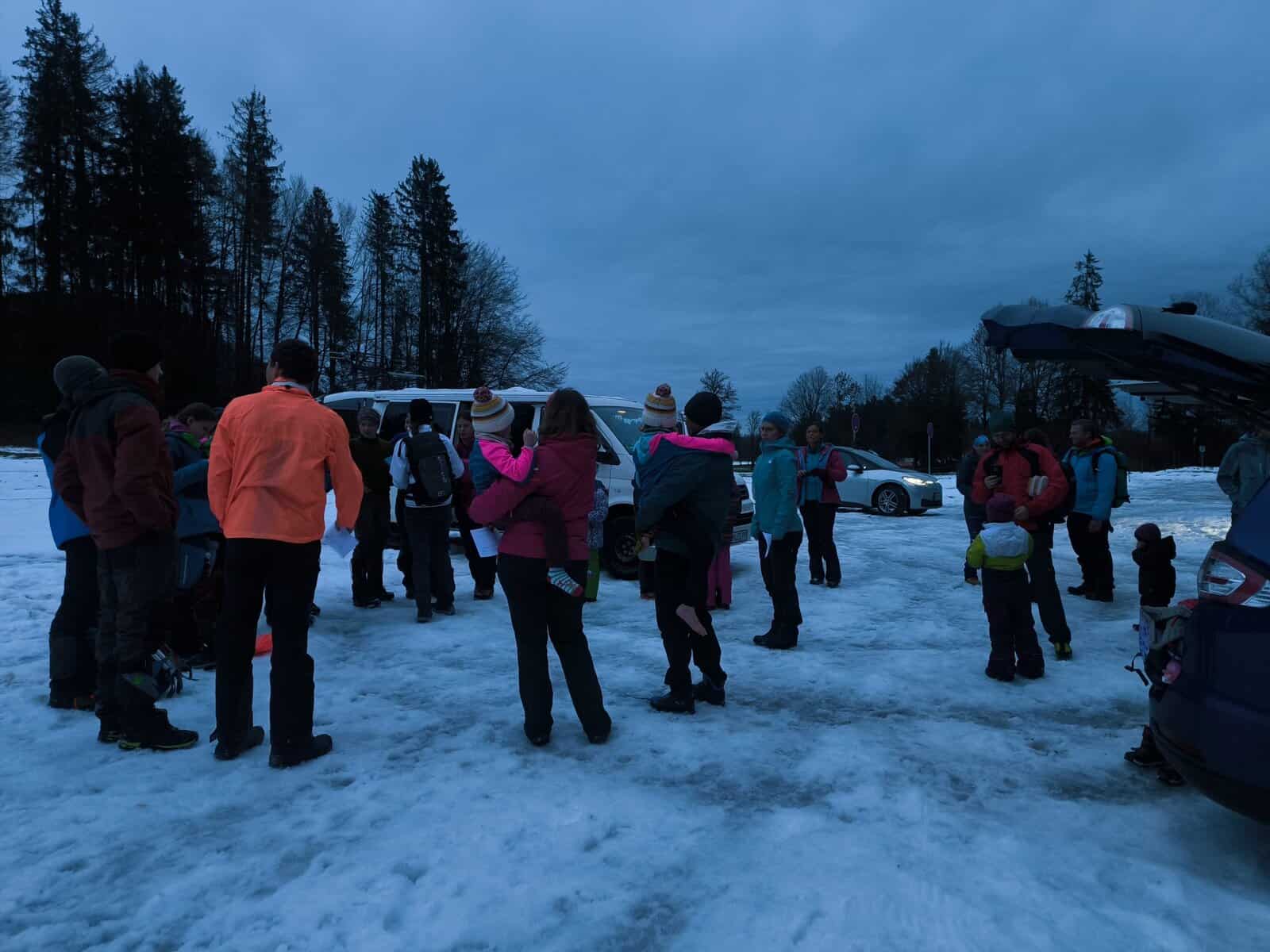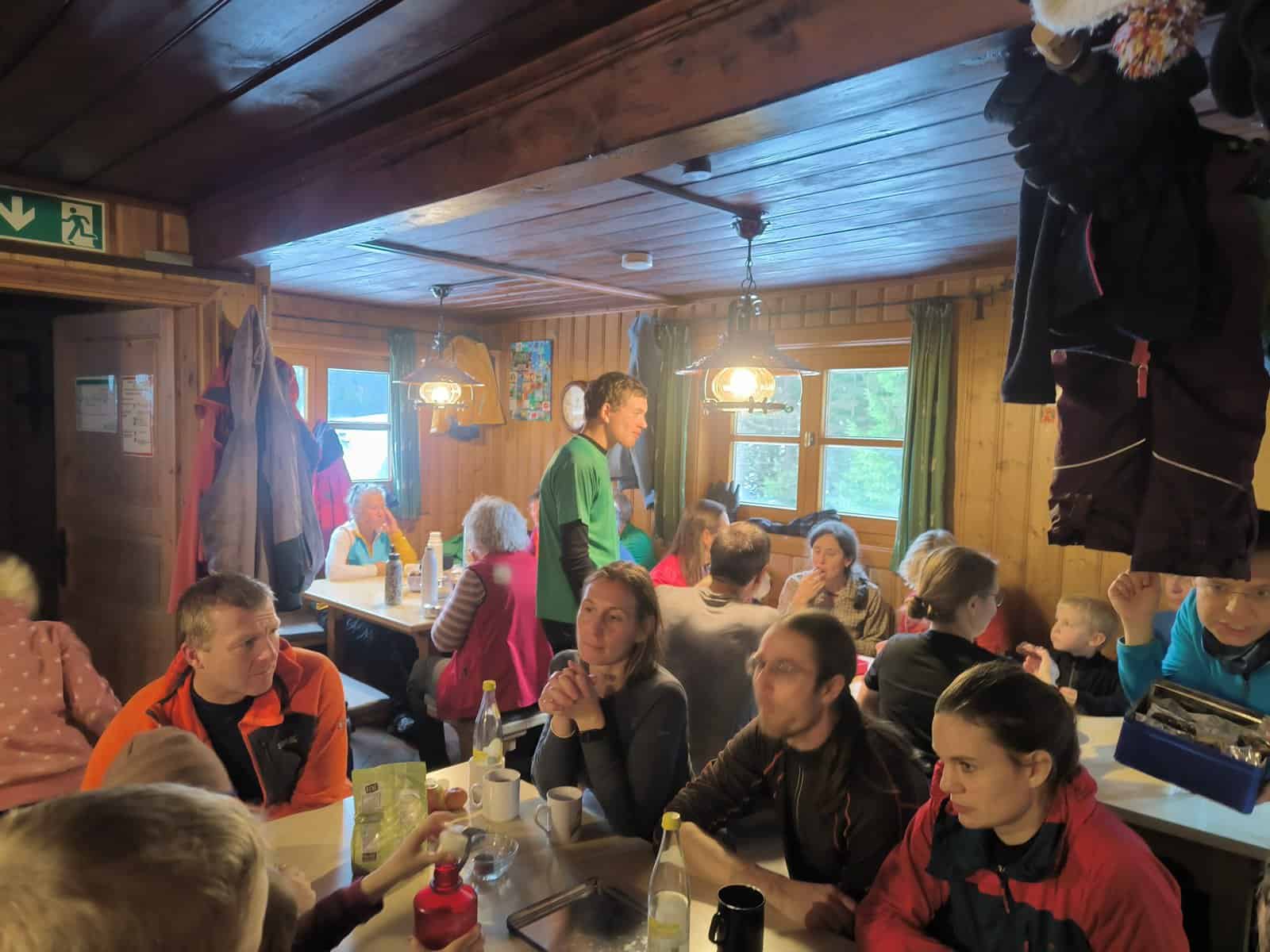 Gemeinsam in großer Runde (ungefähr 50 Neuländer) wurden danach in der Hütte jede Menge Plätzchen, Lebkuchen und Kuchen vertilgt und Punsch getrunken. Zum Schluss ging es gemeinsam zurück ins Tal.