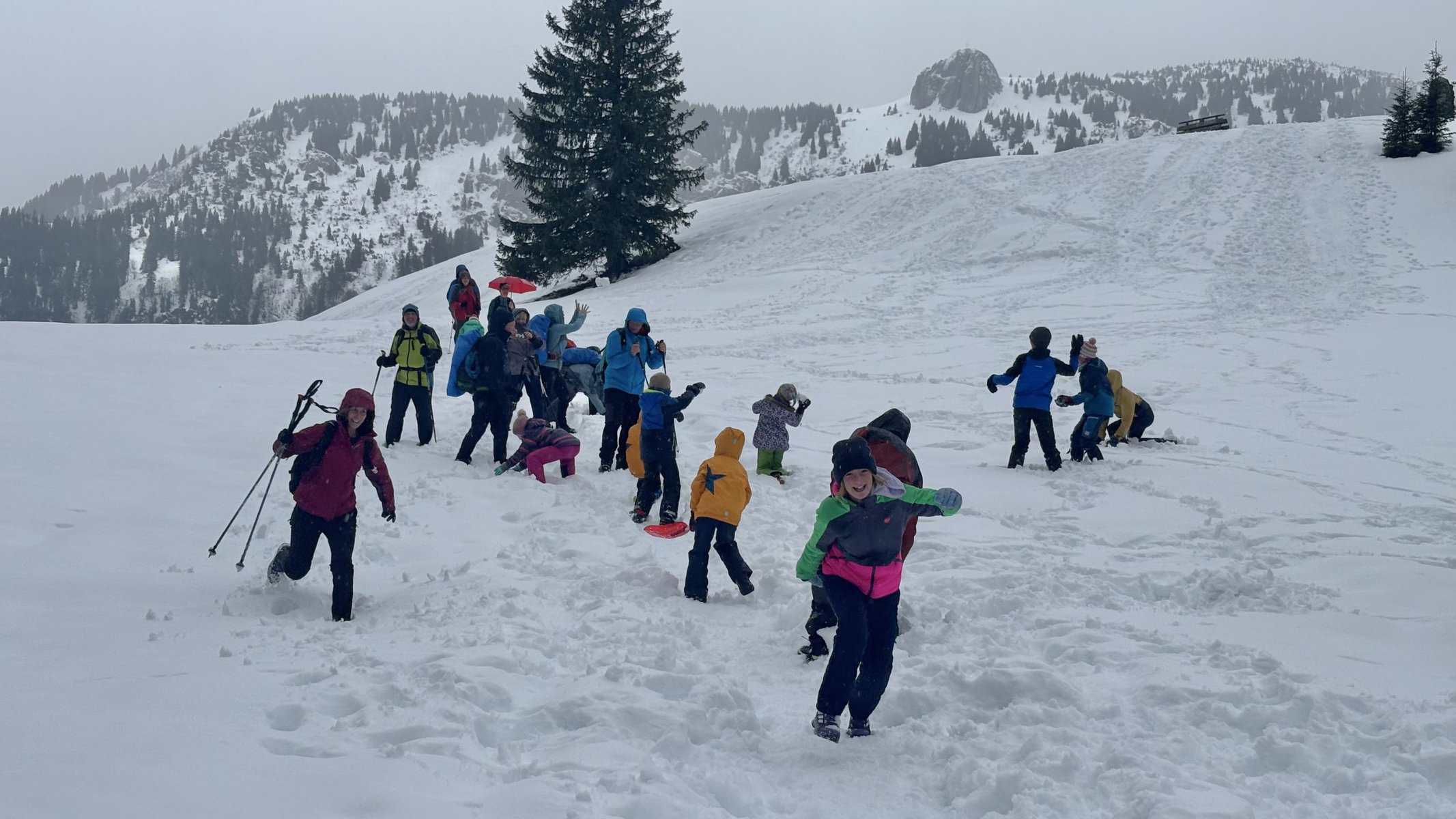 Kurz vor der Mittagszeit zog es dann alle nach draußen, um die Teilnehmer von Alfreds Glühweintour mit einer ordentlichen Schneeballschlacht gebührend zu empfangen.
