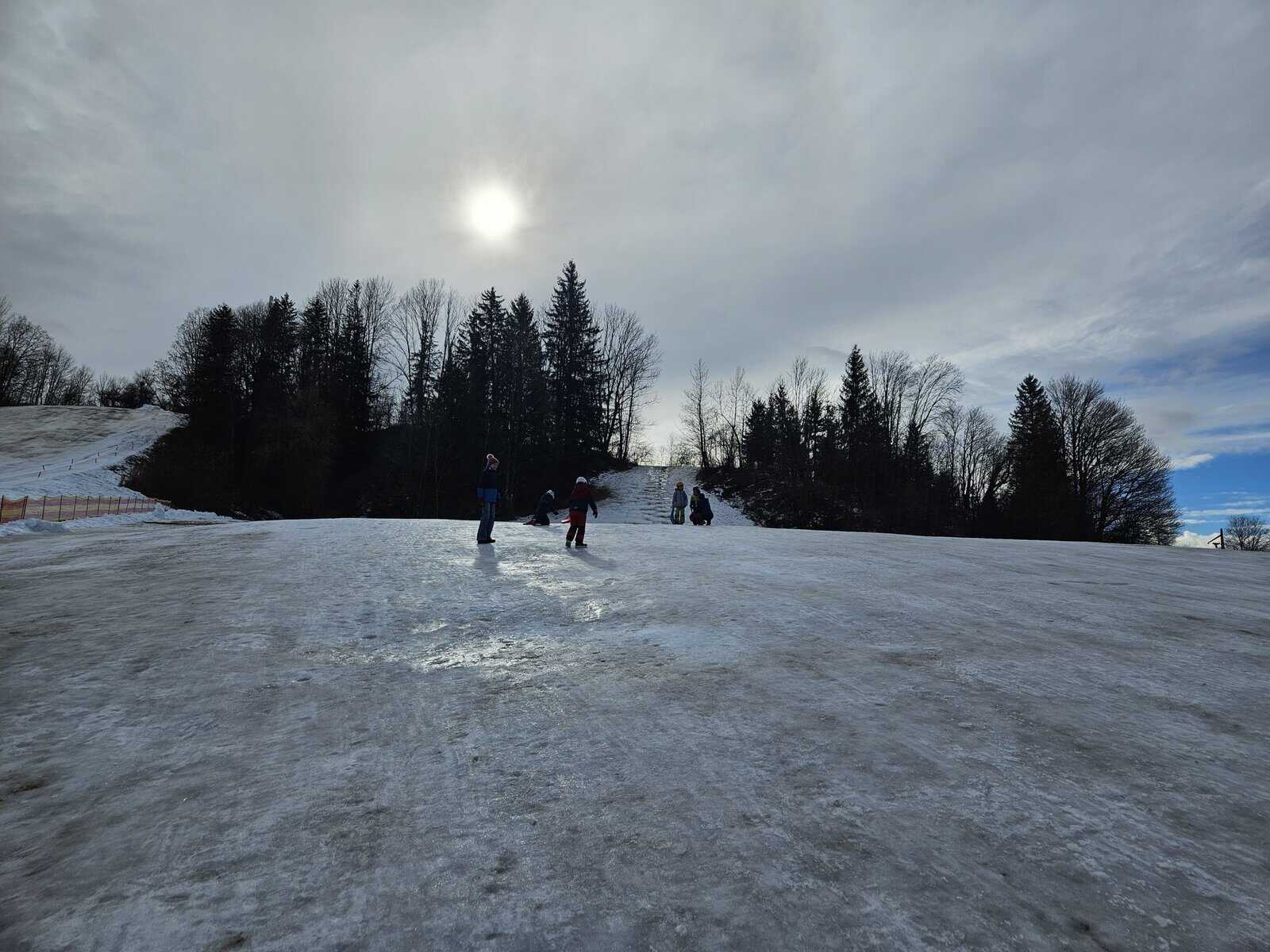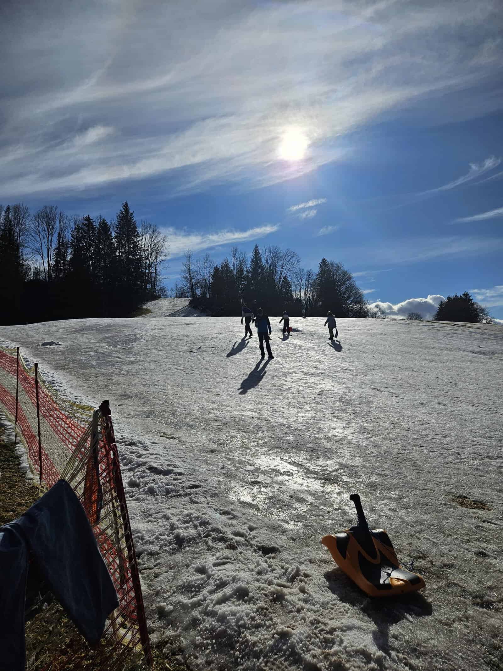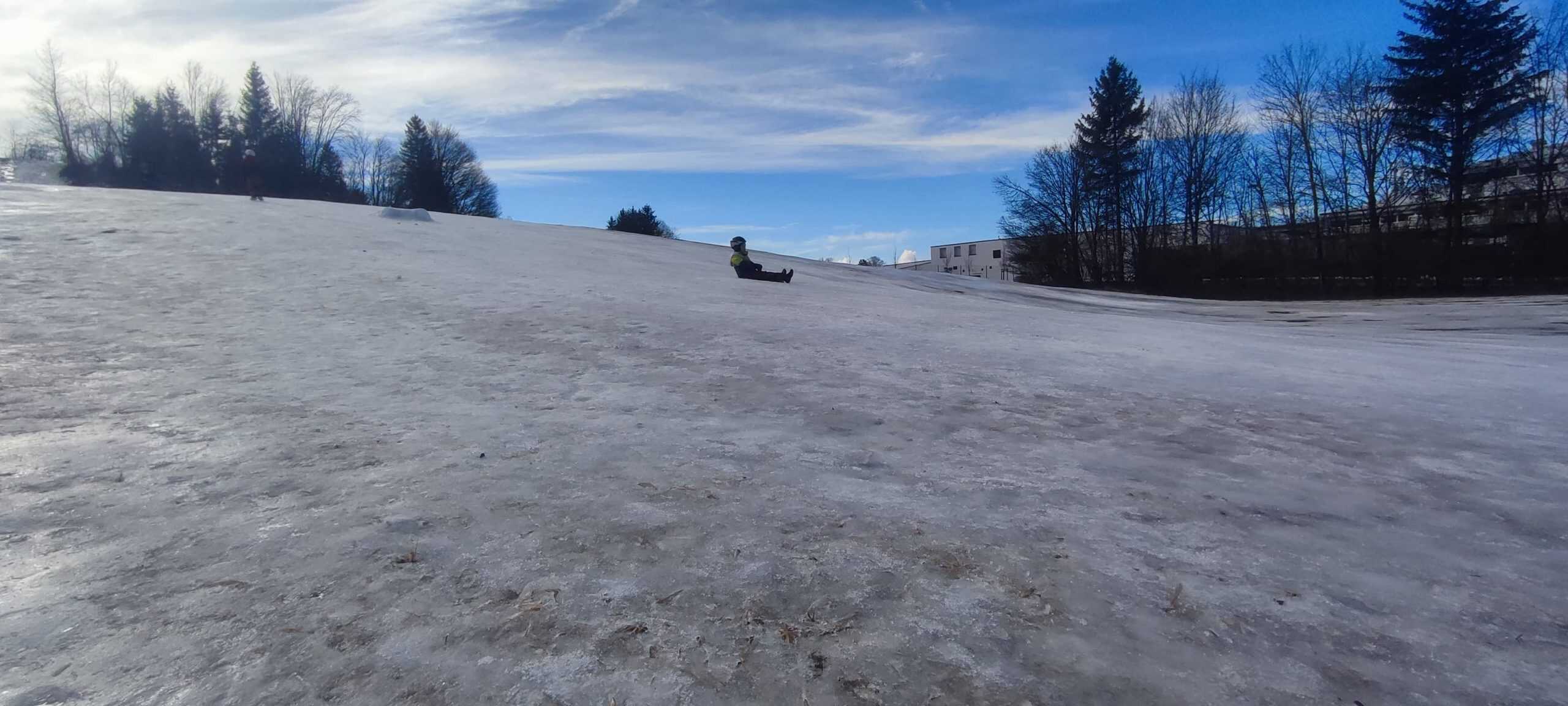 An vielen Ecken liegt leider kein Schnee mehr 😢… Aber wir haben noch welchen gefunden! Also meist mehr festes Wasser als schöner Powder, aber ausreichend und alles für uns ALLEINE. So fuhren Schneewölfe und Bergkatzen gemeinsam an der Berghalde um die Wette. Mit der Sonne kam das Wasser und so wurde der Zipfelbob zum Wasserbob. Als dann alle mehr oder weniger trocken waren, machten wir uns auf dem Weg zur Geschäftsstelle, wo es frische, leckere Waffeln gab. Von denen nicht mehr als ein Krümelchen übrig blieb…