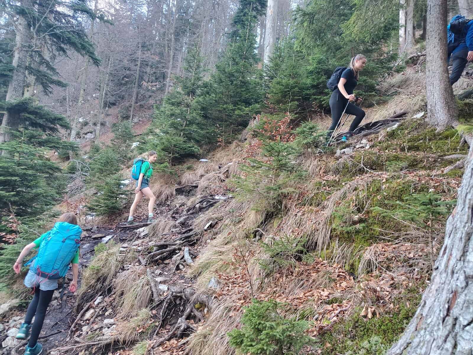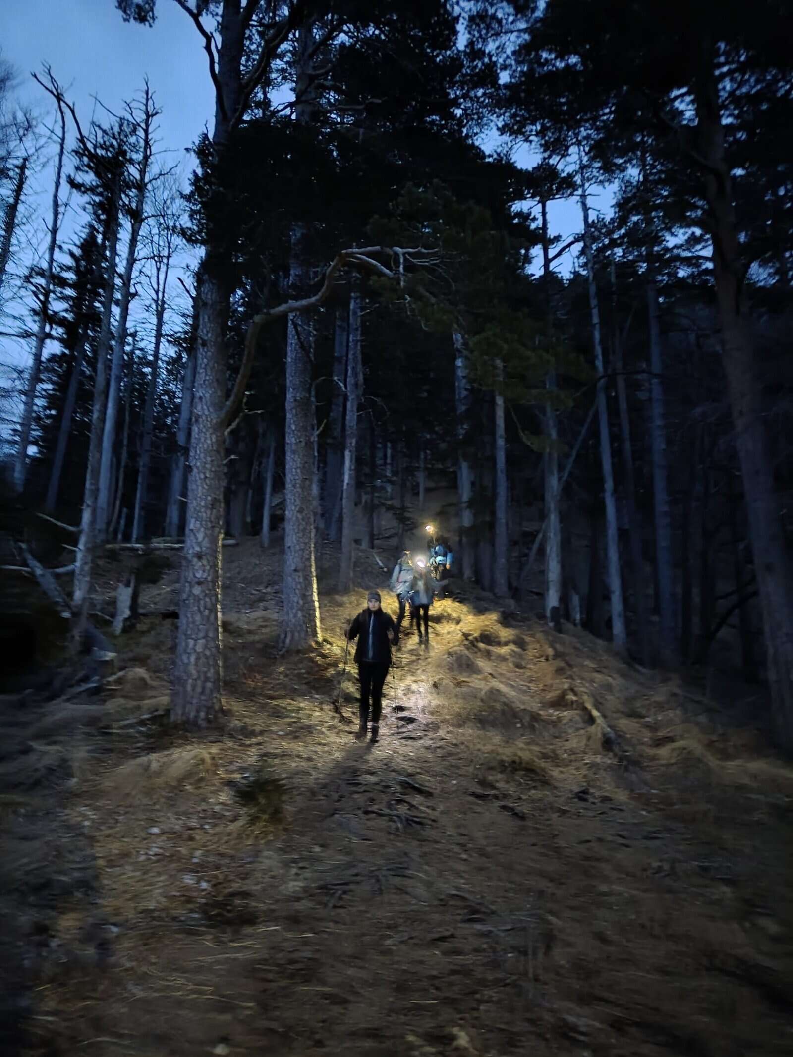 Auf dem Rückweg wurde es langsam dunkel, sodass wir die Stirnlampen auspacken mussten. Wieder am Wanderparkplatz angekommen, erhöhten wir unser Tempo leicht, um den Zug nicht zu verpassen. Trotz des ausgebliebenen Sonnenuntergangs hatten wir alle viel Spaß bei der Tour.