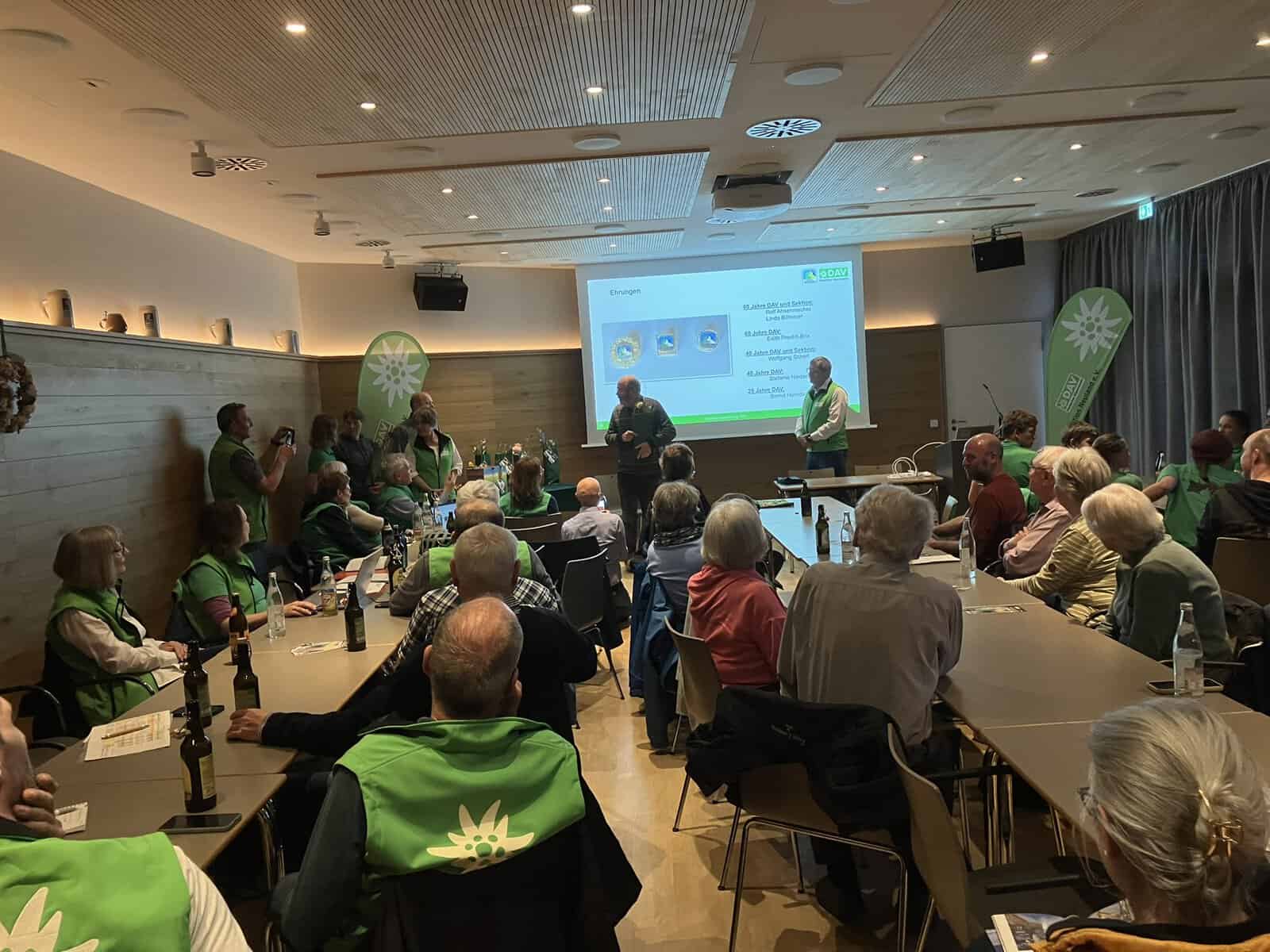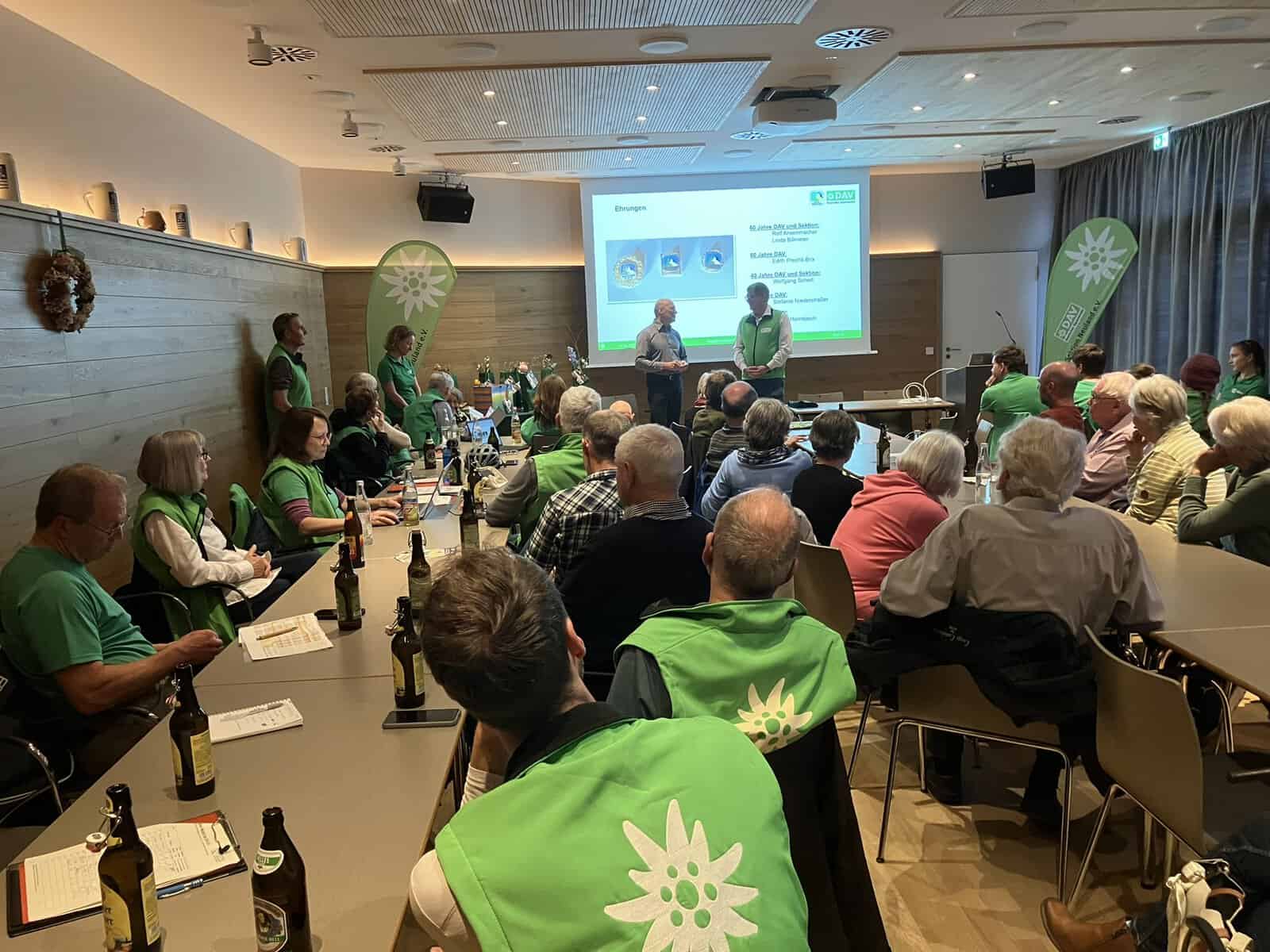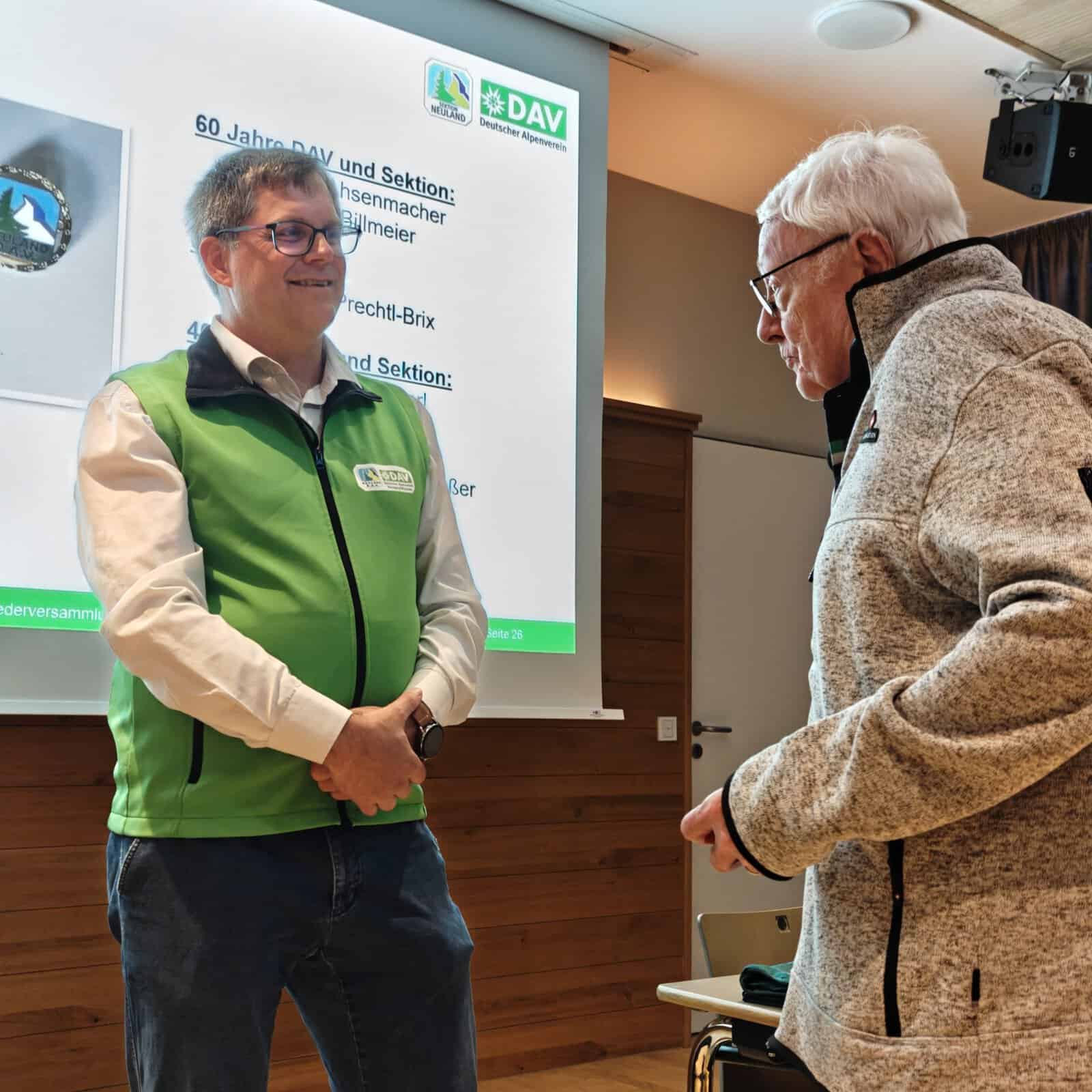 Ein weiteres Herzstück des Vereinslebens ist die Neulandhütte und das engagierte Team dahinter. Die Hütte wird nicht nur kontinuierlich instandgehalten, sondern dient auch dem Naturschutz. So ist die Hütte eine anerkannte „Wochenstube“ für die seltene kleine Bartfledermaus, deren Schutz bei Bauarbeiten oberste Priorität hat, was nicht zuletzt das Naturschutzressort erfreut. Das Hüttenteam sorgt zudem durch regelmäßige „Ramadama“-Aktionen für Ordnung und Sauberkeit rund um das alpine Domizil. Die Vielfalt des Vereinslebens spiegelte sich zudem in der Ehrung langjähriger Mitglieder wider, wobei Karlheinz Gronstedt und Elfriede Hopf für beeindruckende 70 Jahre Vereinszugehörigkeit ausgezeichnet wurden. Abschließend gab der Vorstand einen Ausblick auf kommende Highlights wie das große Sektionsfest im Juni für alle Mitglieder und die traditionelle Bergmesse an der Neulandhütte im Oktober.