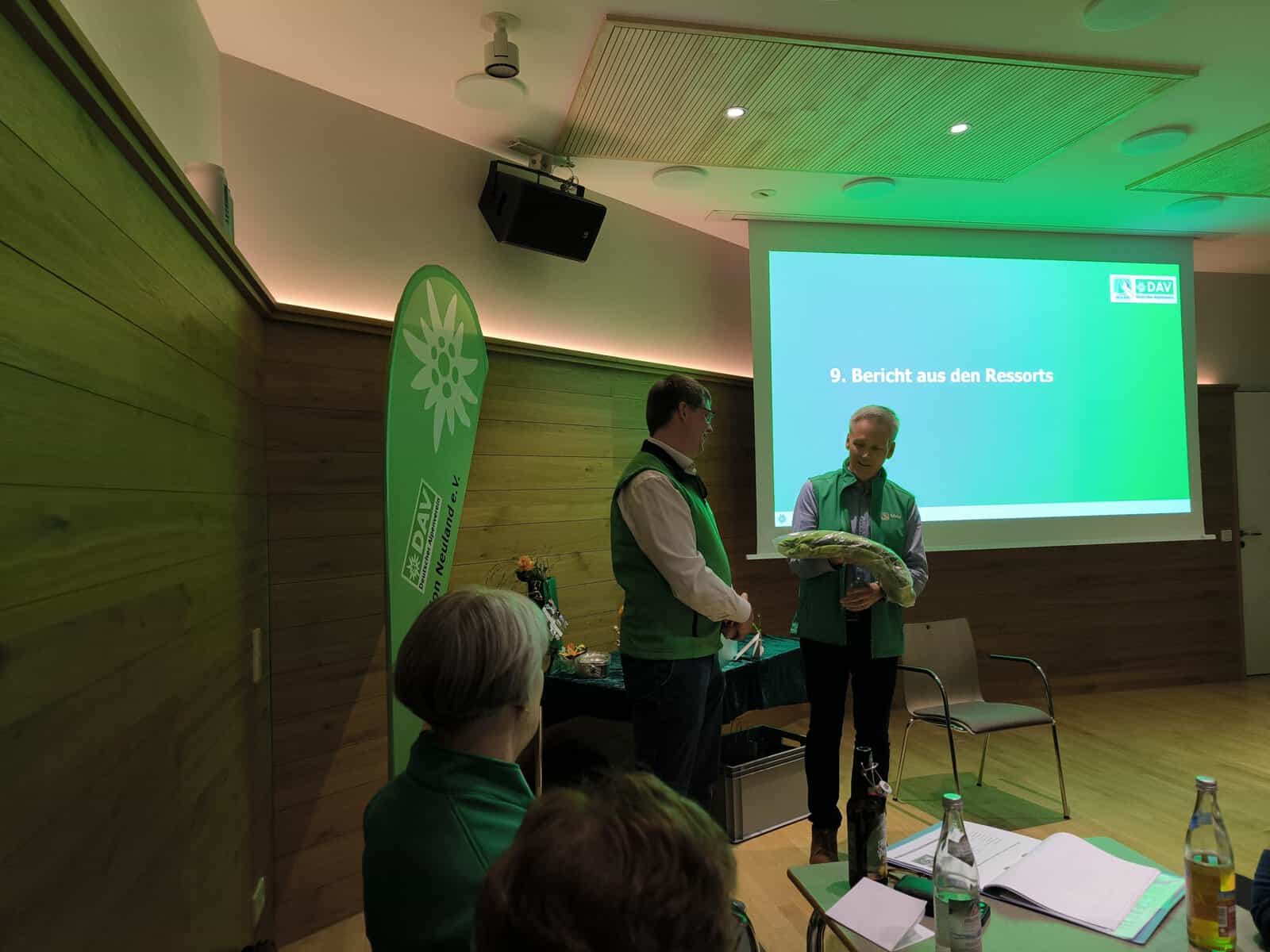 Die Sektion verabschiedete nach acht Jahren den 2. Vorsitzenden Sebastian Posselt. In den anschließenden Neuwahlen wurde Fred Kalt als 1. Vorsitzender, Ramona Fiehne als neue 2. Vorsitzende, Martin Meindl als Tourenleiter und Marlene Fiehne als Jugendreferentin bestätigt.